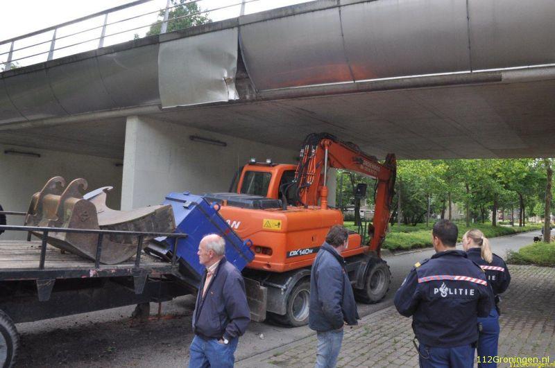 Op de Asingastraat in Groningen reed maandagmiddag een 21-jarige bestuurder uit Woltersum met een graafmachine