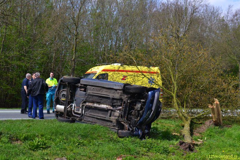 Op de N367 bij Oude Pekela belandde zaterdagavond een auto op de zijkant in de