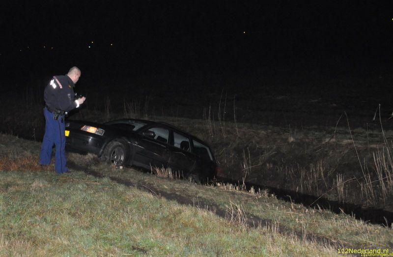 Auto in sloot bij afrit A7