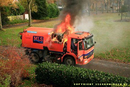 Zuidlaren – Aan de Hulstlaan in Zuidlaren is dinsdagmiddag een veegwagen in brand gevlogen. De