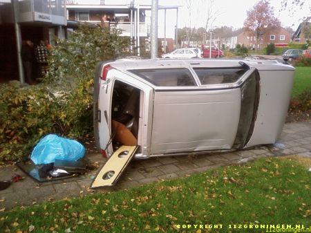 112Flits: Auto op de zijkant in Pekela