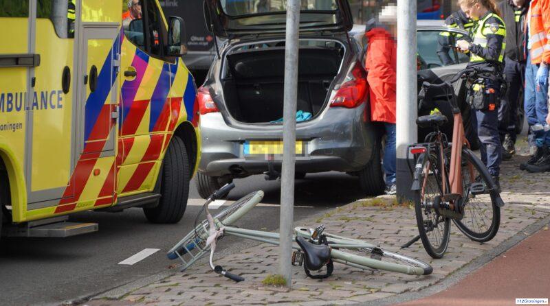 Auto en fietser botsen op de Stationsweg Groningen, 1 gewonde