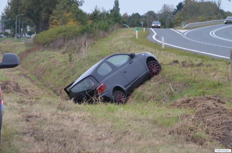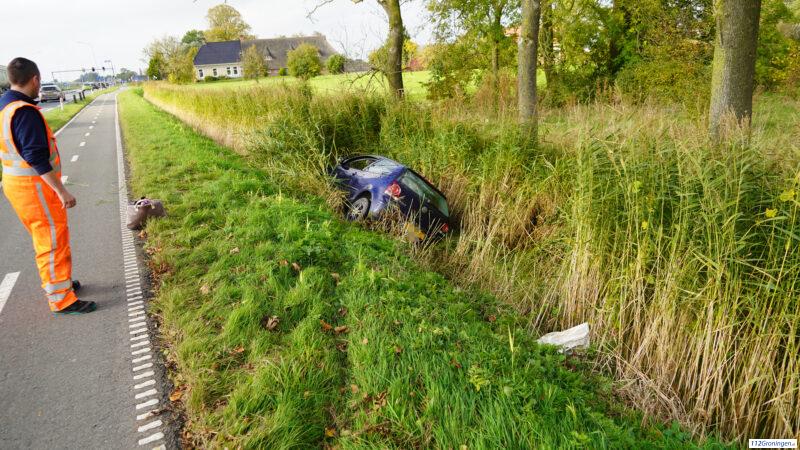 Auto belandt in sloot bij eenzijdig ongeval op N366 in Nieuwe Pekela
