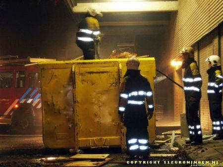 Container sloopafval in brand bij Winkelcentrum Paddepoel