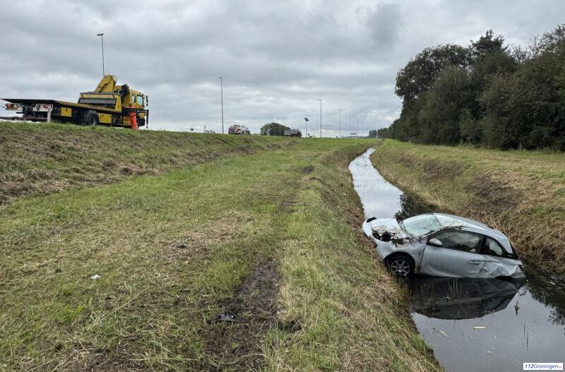 Auto raakt in de sloot bij lus N33 Zuidbroek