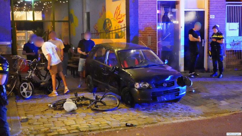 Automobilist belandt op terras van BOEL in Groningen, wonderwel geen gewonden