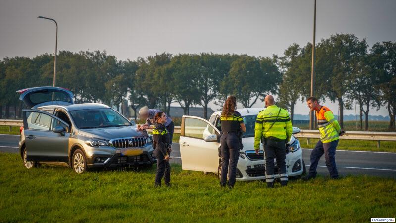 Auto en vrachtwagen botsen op de N355 bij Zuidhorn