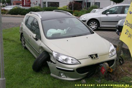 Groningen – Door regen en mogelijk iets te snel door de bocht, is deze bestuurder