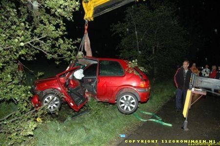 Auto frontaal op boom bij Godlinze+paard Matsloot