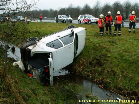 Auto raakt van snelweg en belandt in sloot