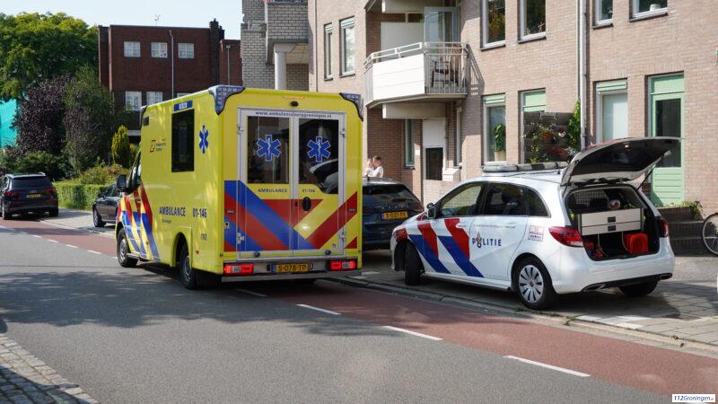 Fietser en auto botsen op het Hoendiep, 1 gewonde