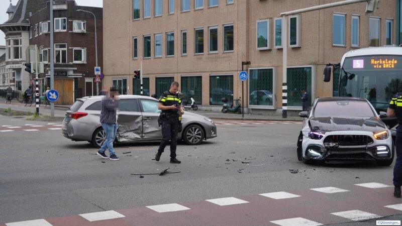 Groningen – Bij een verkeersongeluk op de Stationsweg zijn zaterdagavond twee personenwagen met elkaar in