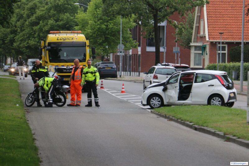 Sappemeer – Op de Noorderstraat in Sappemeer zijn vanochtend een auto en een brommer met