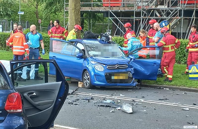 Groningen- Op de Europaweg/Boumaboulevard heeft maandagmiddag een forse aanrijding plaatsgevonden tussen een auto(ambulance) en een
