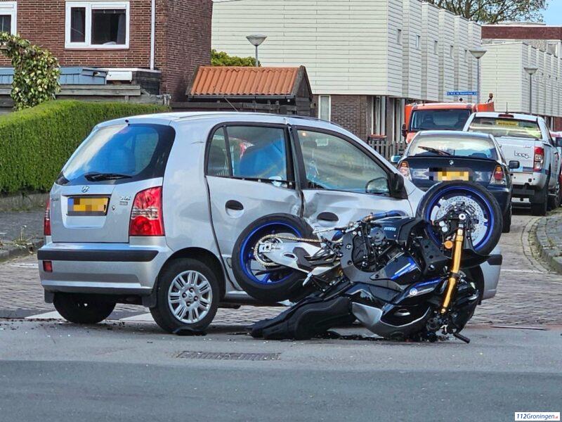 Ongeval tussen motor en auto in Winschoten (+video van het moment van de aanrijding!)
