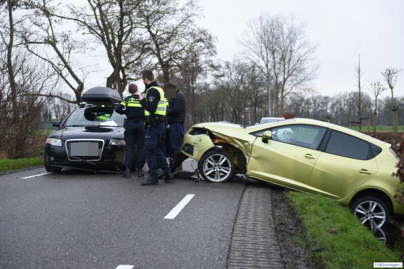 Twee auto’s botsen en belanden in sloot bij ongeval op Drentsemondenweg, Valthermond