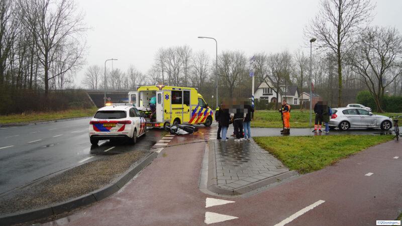 Auto en een scooter botsen op de Groningerweg, 1 gewonde