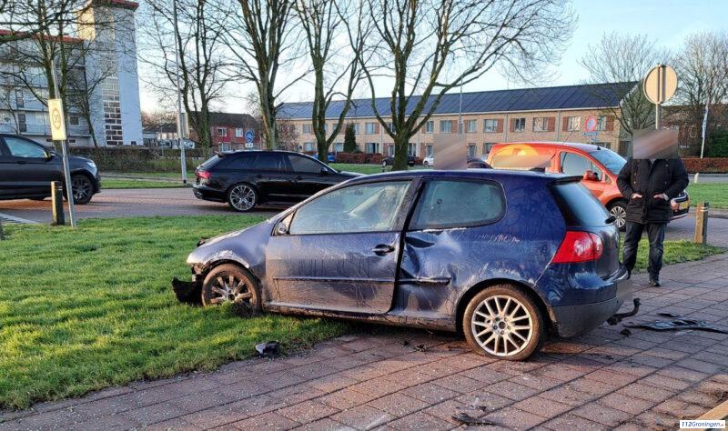 Veendam – Op de Kibbelgaarn in Veendam is maandagavond een auto van de weg geraakt