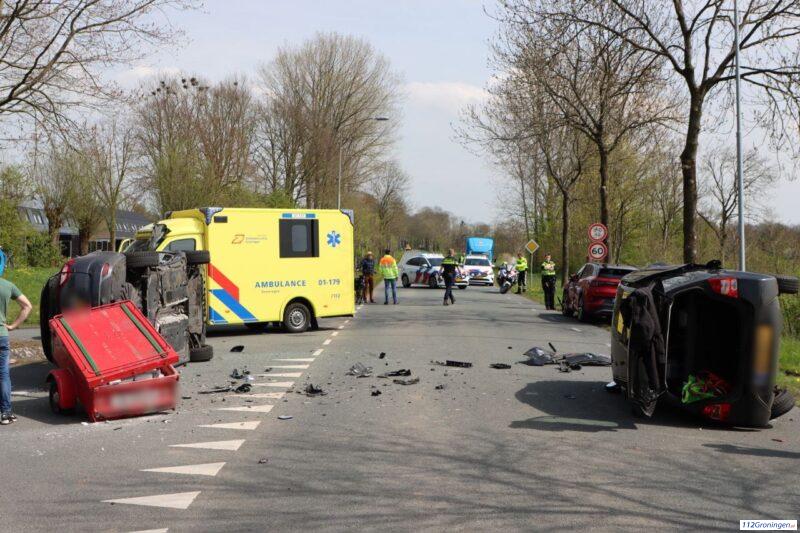 Twee voertuigen op de kant na ongeval in Zuidhorn