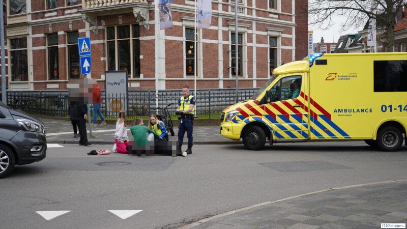Auto en fietser komen in botsing op de Hereweg, 1 gewonde