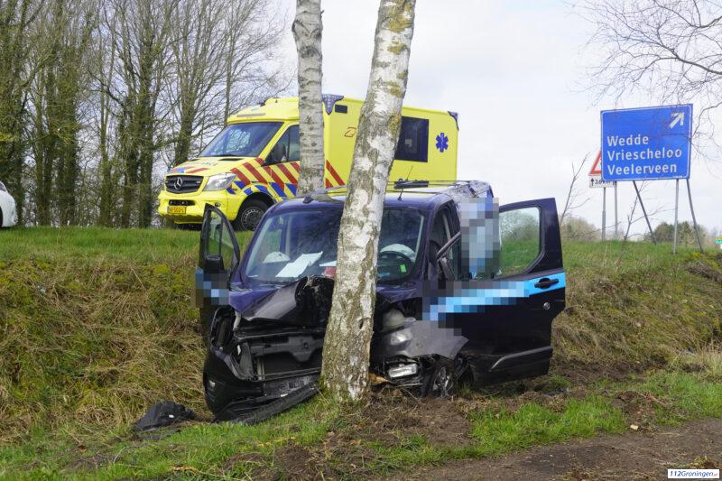 Auto raakt tegen boom bij eenzijdig ongeval in Nieuwe Pekela