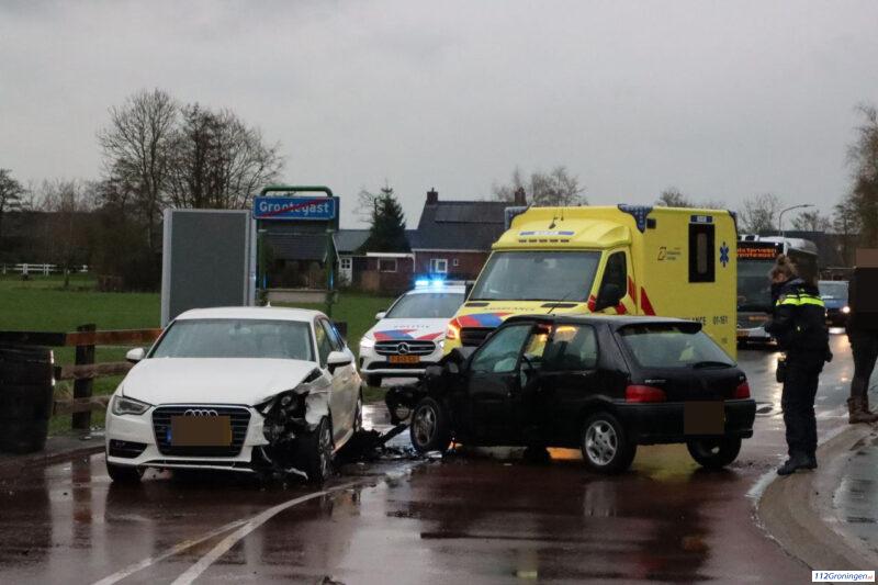 Aanrijding tussen twee personenauto’s in Grootegast, 4 gewonden