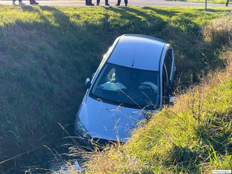 Auto eindigt in sloot na aanrijding Warvenweg bij Borgsweer