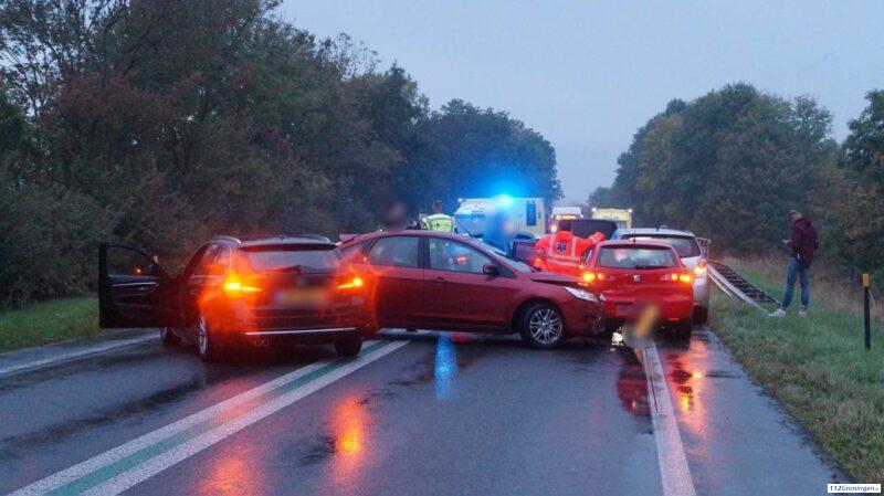 Kettingbotsing 8 voertuigen op de N46 bij Zuidwolde, twee gewonden (Video)