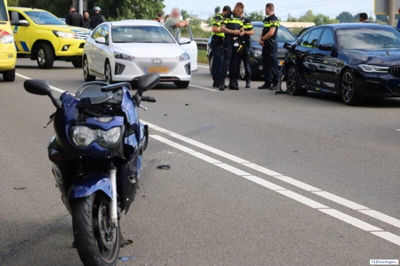 Groningen – Op de Europaweg zijn een motorrijder en een automobilist met elkaar in botsing