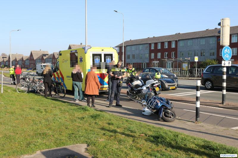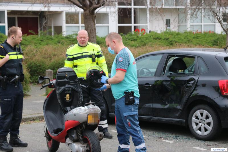 Auto en scooterrijdster botsen op de Berlageweg in Groningen, 1 lichtgewonde