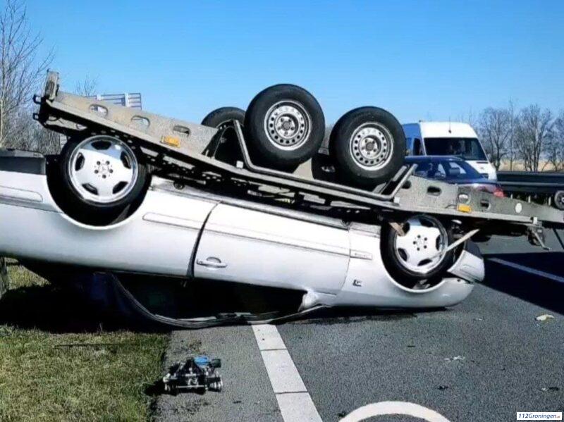 Veendam – Bij een verkeersongeval vrijdagmorgen op de N33 nabij Veendam is een aanhangwagen met