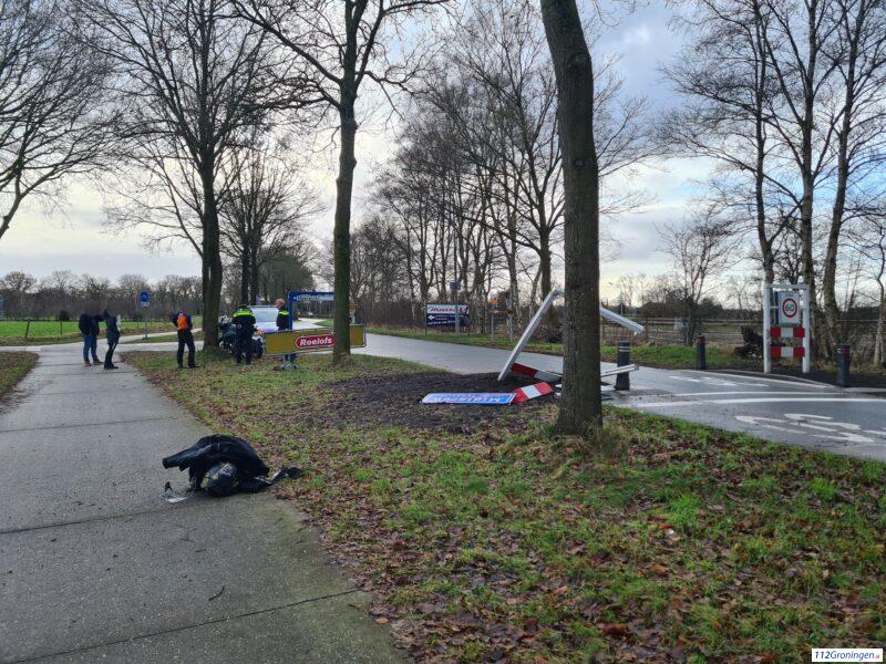 Motorrijder botst op bebording van wegversmalling in Midlaren (Video)