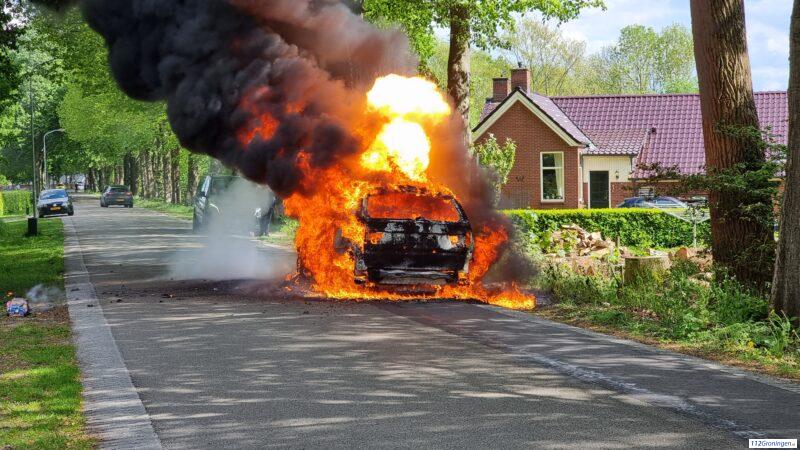 Westerbroek- Aan de Oudeweg stond donderdagmiddag om 15.30 uur auto volledig in de brand. De