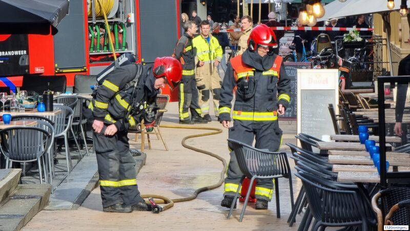 Gasfles in brand op vol terras in de Poelestraat, korte ontruiming (Video)