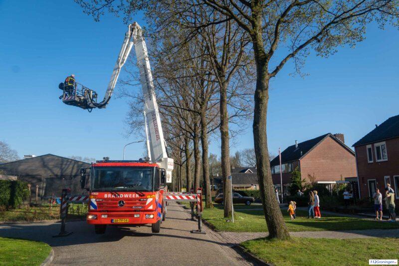 De brandweer van Winschoten werd maandagmiddag rond 17:30 opgeroepen voor een dier op hoogte aan