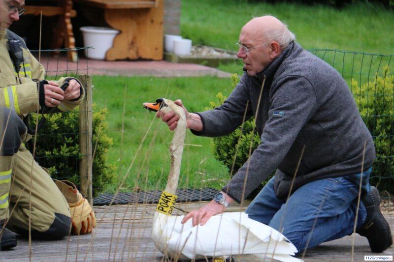 Brandweer bevrijdt zwaan van vishaak en visdraad