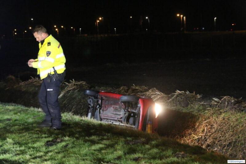 Veendam – Een auto is donderdagavond in een sloot langs de Orionweg terechtgekomen. De brandweer