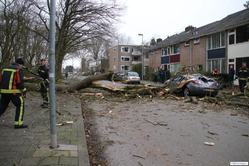 Groningen – De Groninger brandweer werd zaterdagochtend opgeroepen voor een melding van stormschade aan de