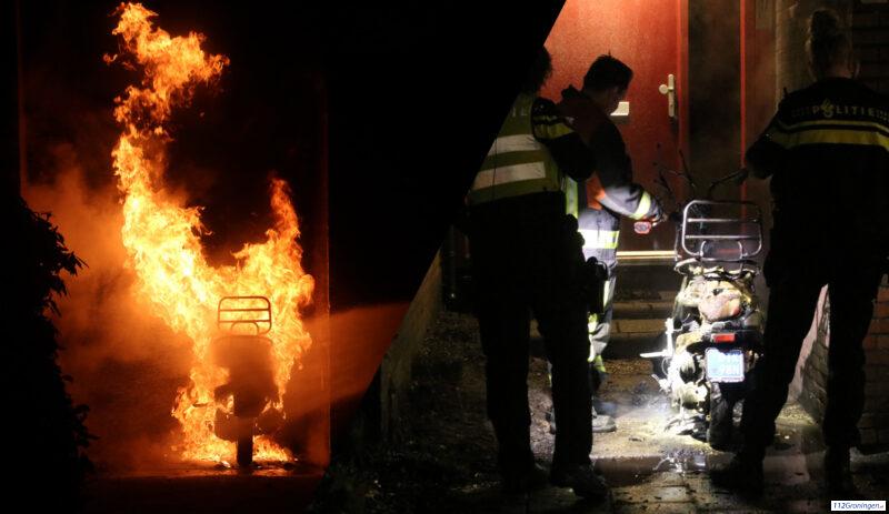 Scooter volledig uitgebrand voor woning in Lewenborg, vermoedelijk sprake van brandstichting