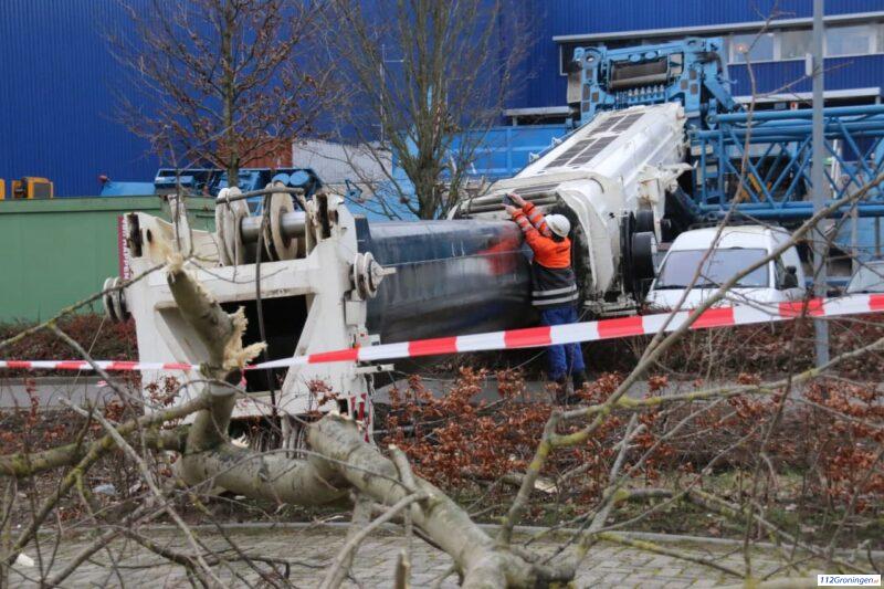 Groningen – Aan de achterzijde van woonwarenhuis IKEA is dinsdagmiddag een grote telescoopkraan omgevallen. Voor