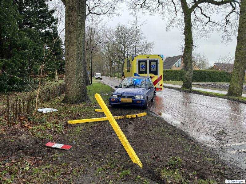 Automobiliste ramt verkeersbord bij Bellingwolde