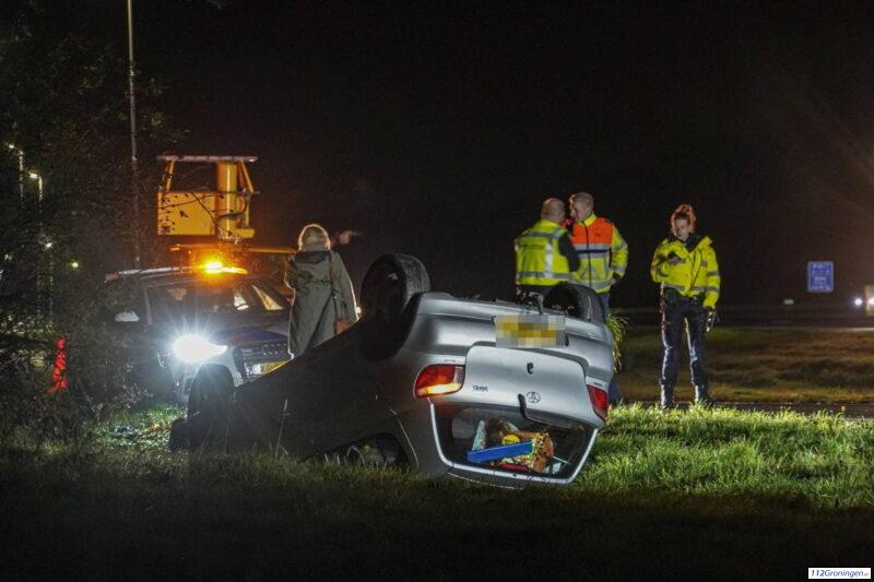 Oponthoud voor verkeer op A7 vanuit Stad door omgeslagen auto (Video)