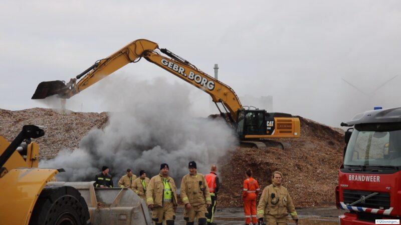 Broei in bult met houtsnippers in Farmsum houdt brandweer uren bezig (Video)
