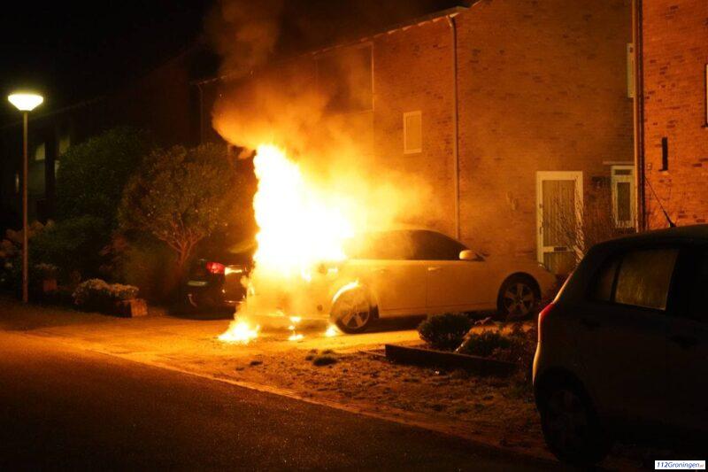 Auto verwoest door brand in Eelde,vermoedelijk brandstichting (Video)