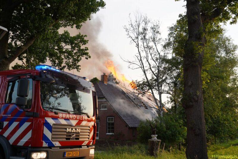 Uitslaande brand verwoest woonboerderij in Peize (Video)