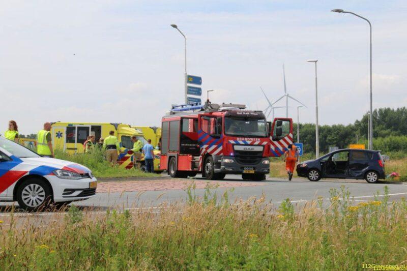 Twee personenauto’s botsen op rotonde van N366 bij Veendam