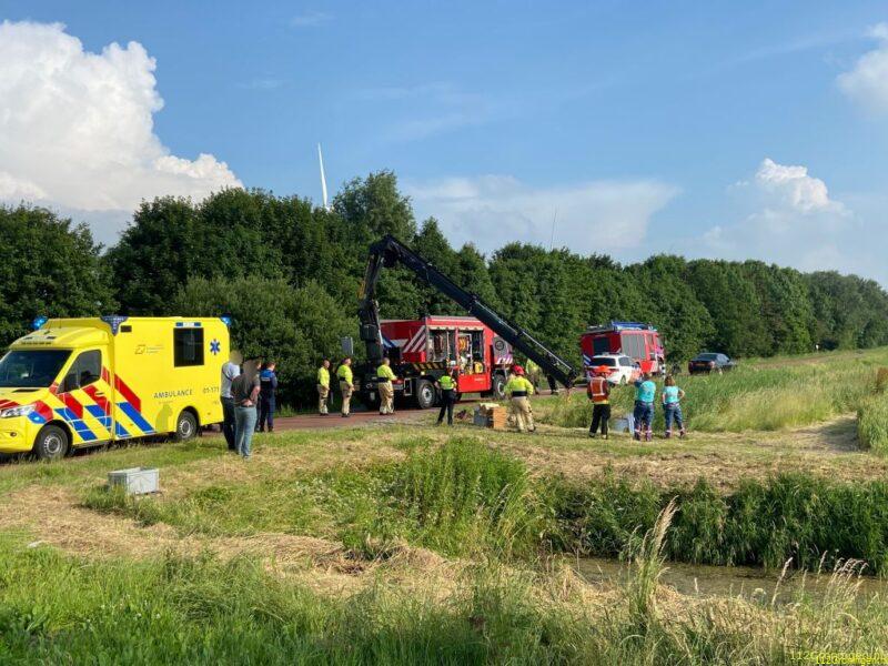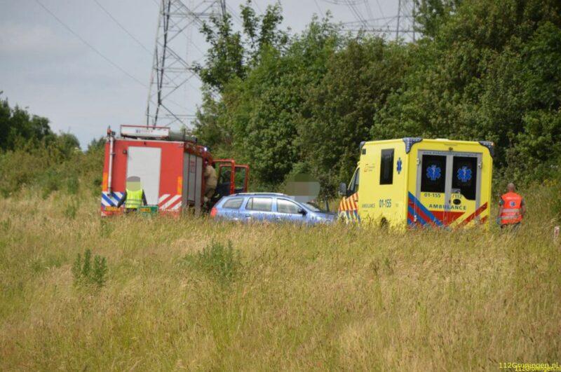 Automobilist belandt met auto op zijkant in sloot en raakt gewond in Farmsum