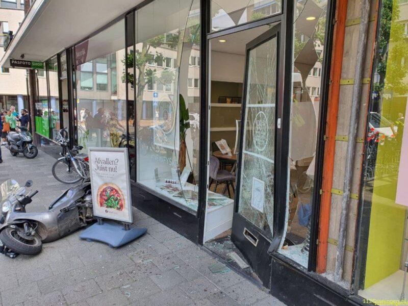 Automobilist trapt verkeerde pedaal in en ramt o.a. een winkelpui (Video)