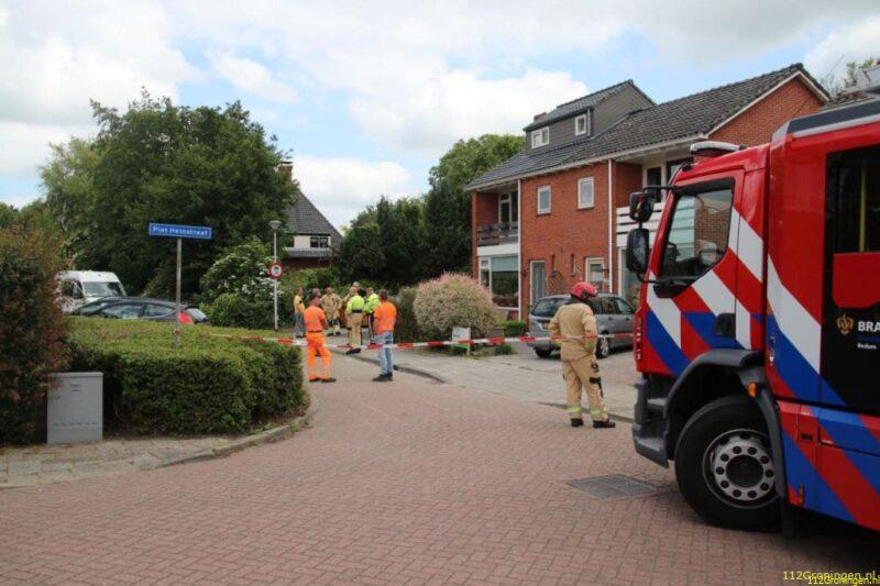 Aan de Van Heemskerkstraat in Bedum is dinsdagmiddag een gasleiding geraakt tijdens werkzaamheden.