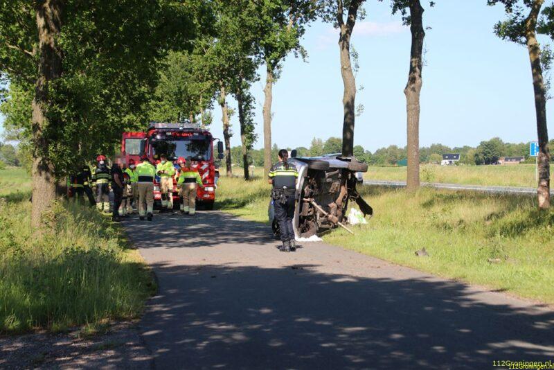 Auto botst tegen boom en belandt op zijkant bij Kolham (Video)